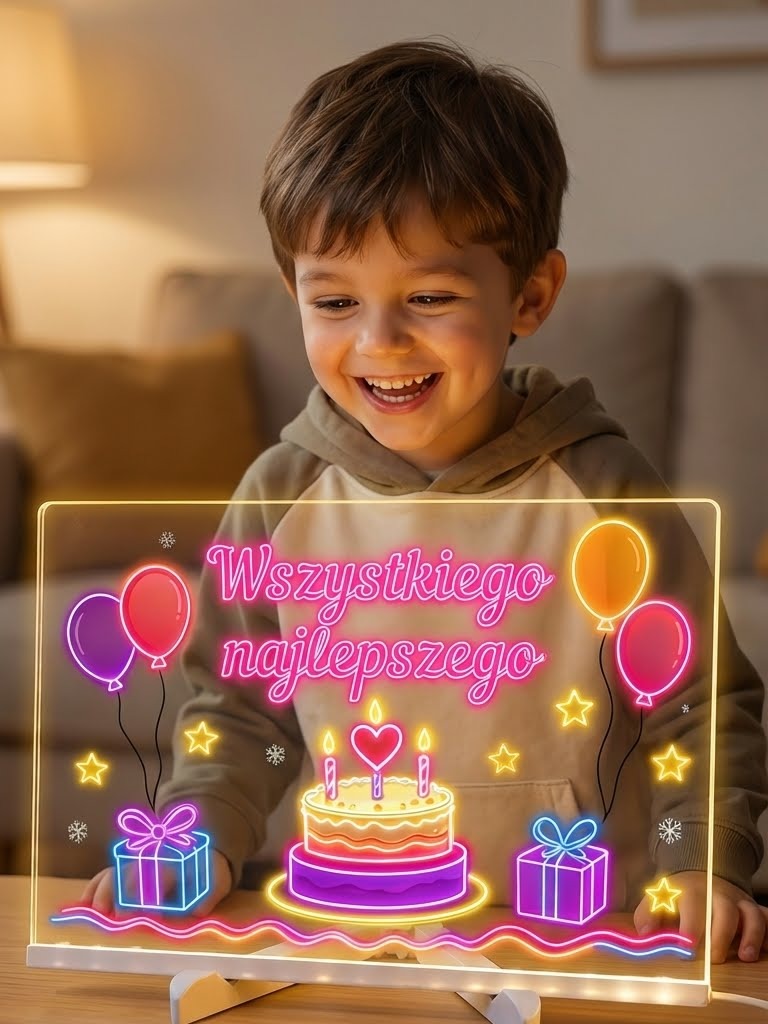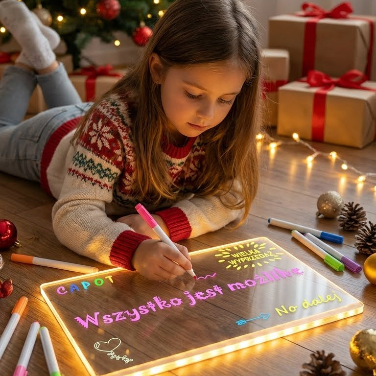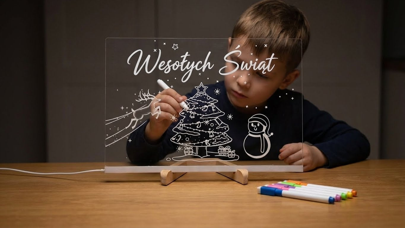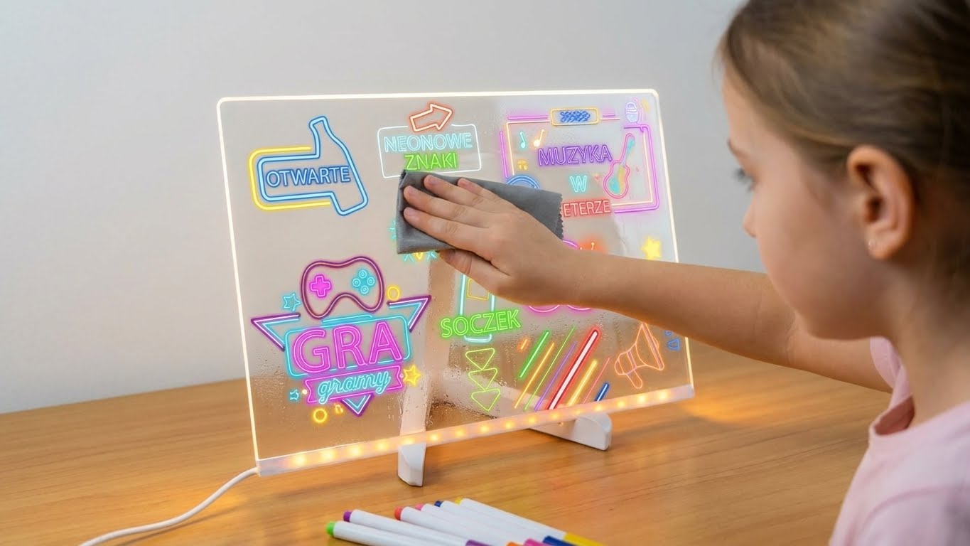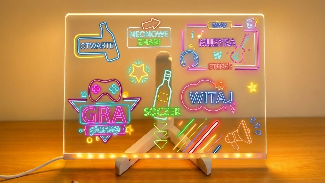 Ta podświetlana tablica LED zmienia zwykłe chwile w małe święta. wystarczy napisać kilka słów, by stworzyć świecący, osobisty komunikat, który robi ogromne wrażenie.