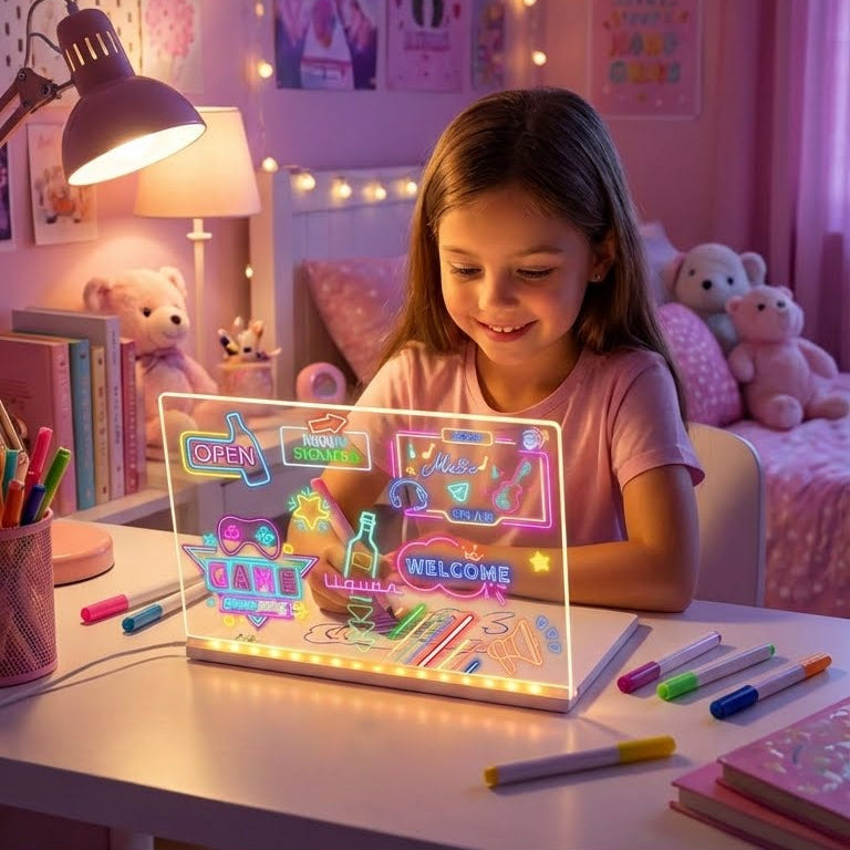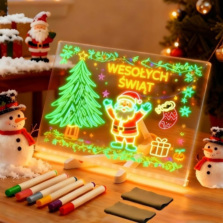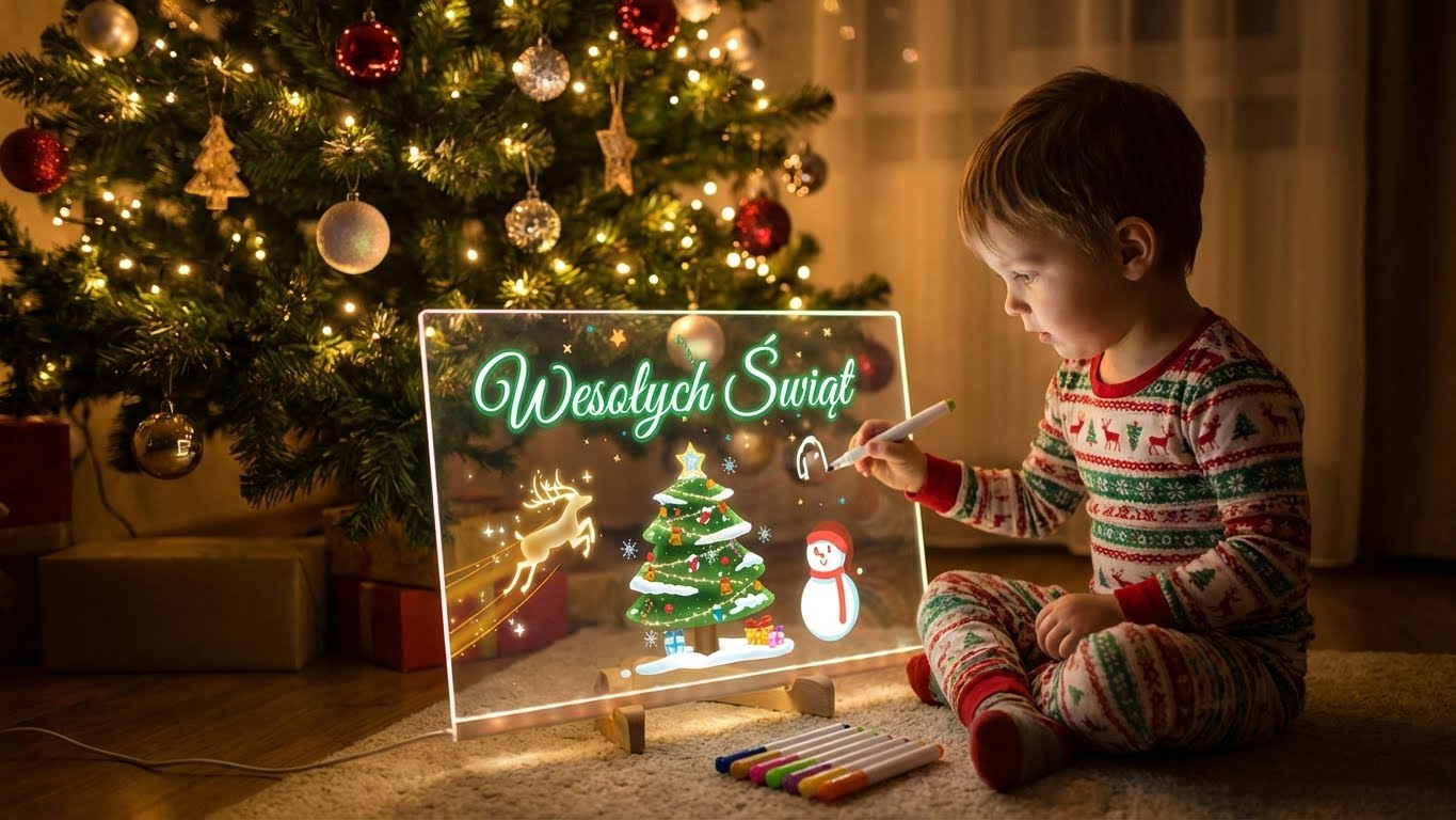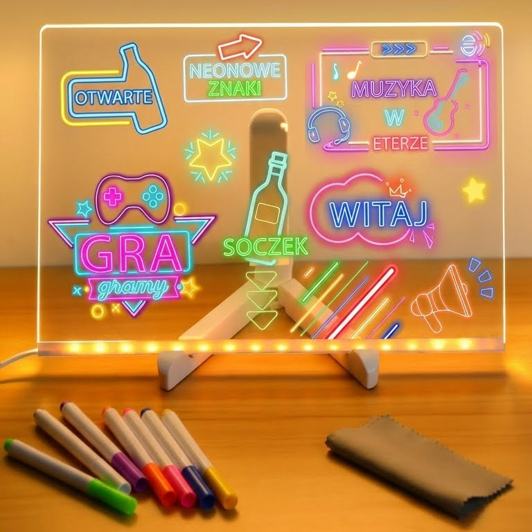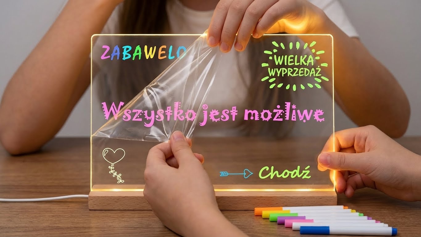 Ta podświetlana tablica LED zmienia zwykłe chwile w małe święta. wystarczy napisać kilka słów, by stworzyć świecący, osobisty komunikat, który robi ogromne wrażenie.