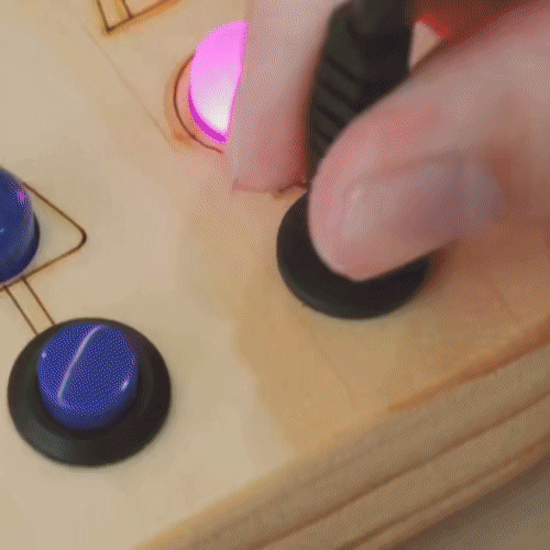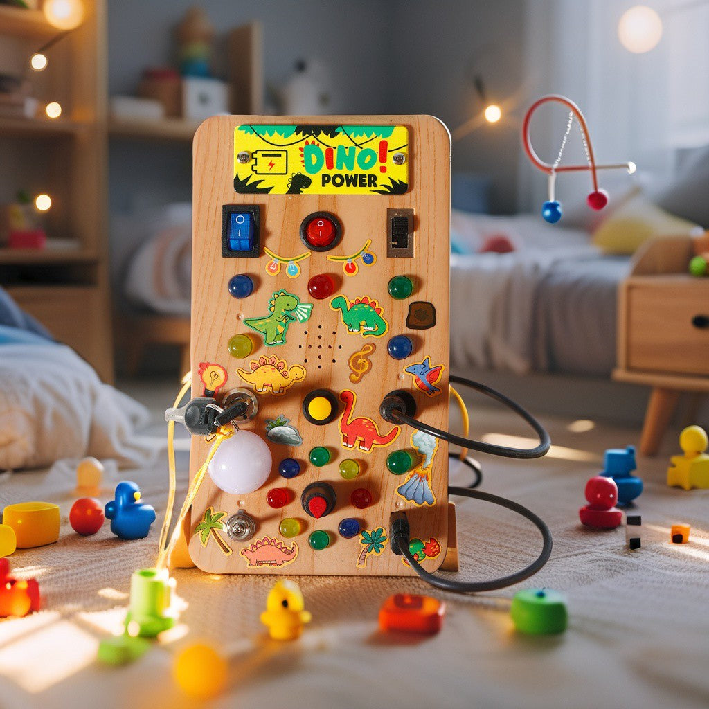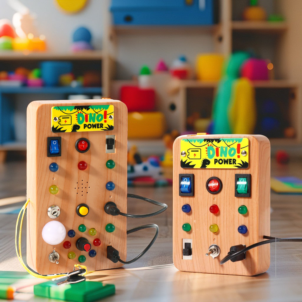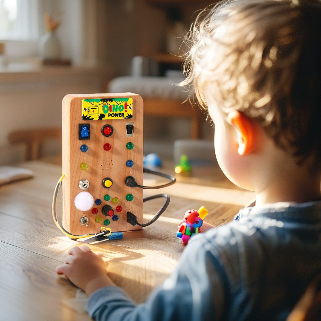 Każdy z 10 przełączników działa inaczej, każdy zapala inną diodę LED, to dziecko decyduje co się stanie, Rozwija samodzielne myślenie i logiczne wnioskowanie.