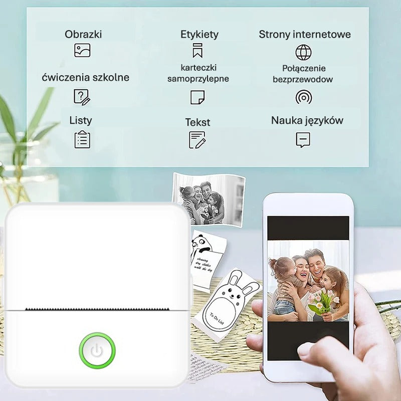 Mini Drukarka Termiczna do Notatek, Kolorowanek i Etykiet – bez tuszu, z aplikacją mobilną