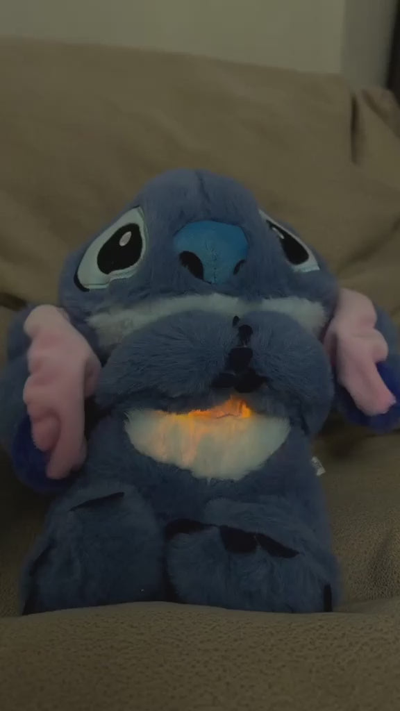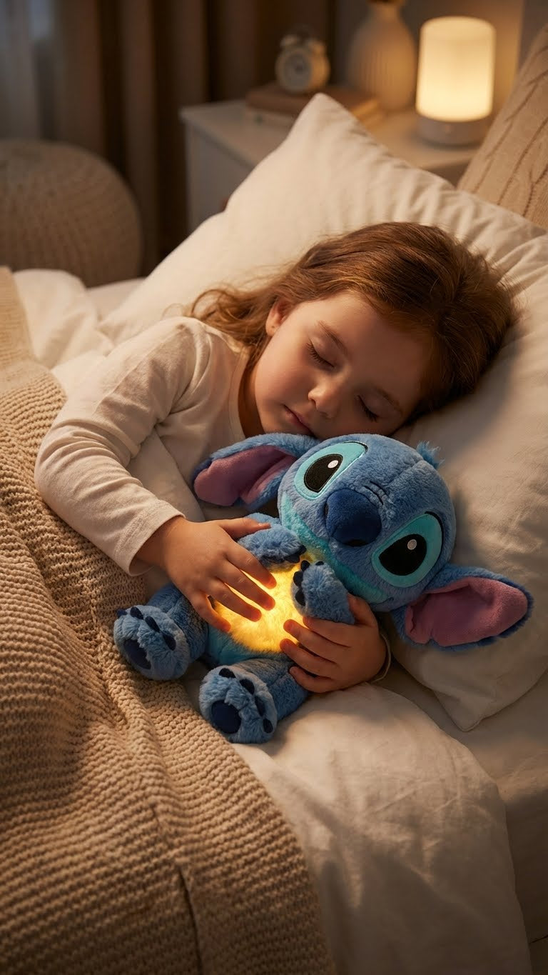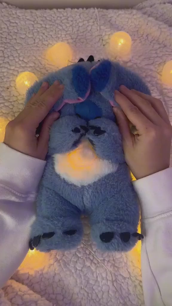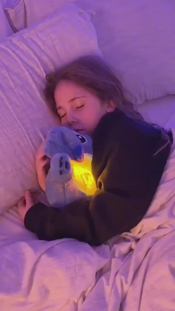 Jego brzuszek delikatnie unosi się w rytmie świetlistego oddechu, ten kojący pluszak natychmiast tworzy miękką, relaksującą atmosferę, która przenosi Cię w idealny stan odprężenia.