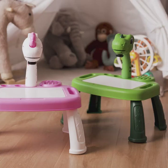 Rozbudź kreatywność swojego dziecka dzięki interaktywnemu stolikowi do rysowania z projektorem w kształcie uroczego dinozaura! Ten edukacyjny zestaw łączy zabawę z nauką, umożliwiając maluchom rysowanie obrazków z projekcji, rozwijając zdolności manualne i wyobraźnię. Dzięki dołączonej muzyce oraz kolorowym akcesoriom, każda sesja rysowania staje się fascynującą przygodą.