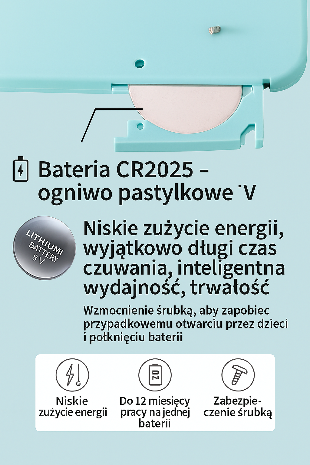 Zasilanie: Bateria CR (wymienna)
